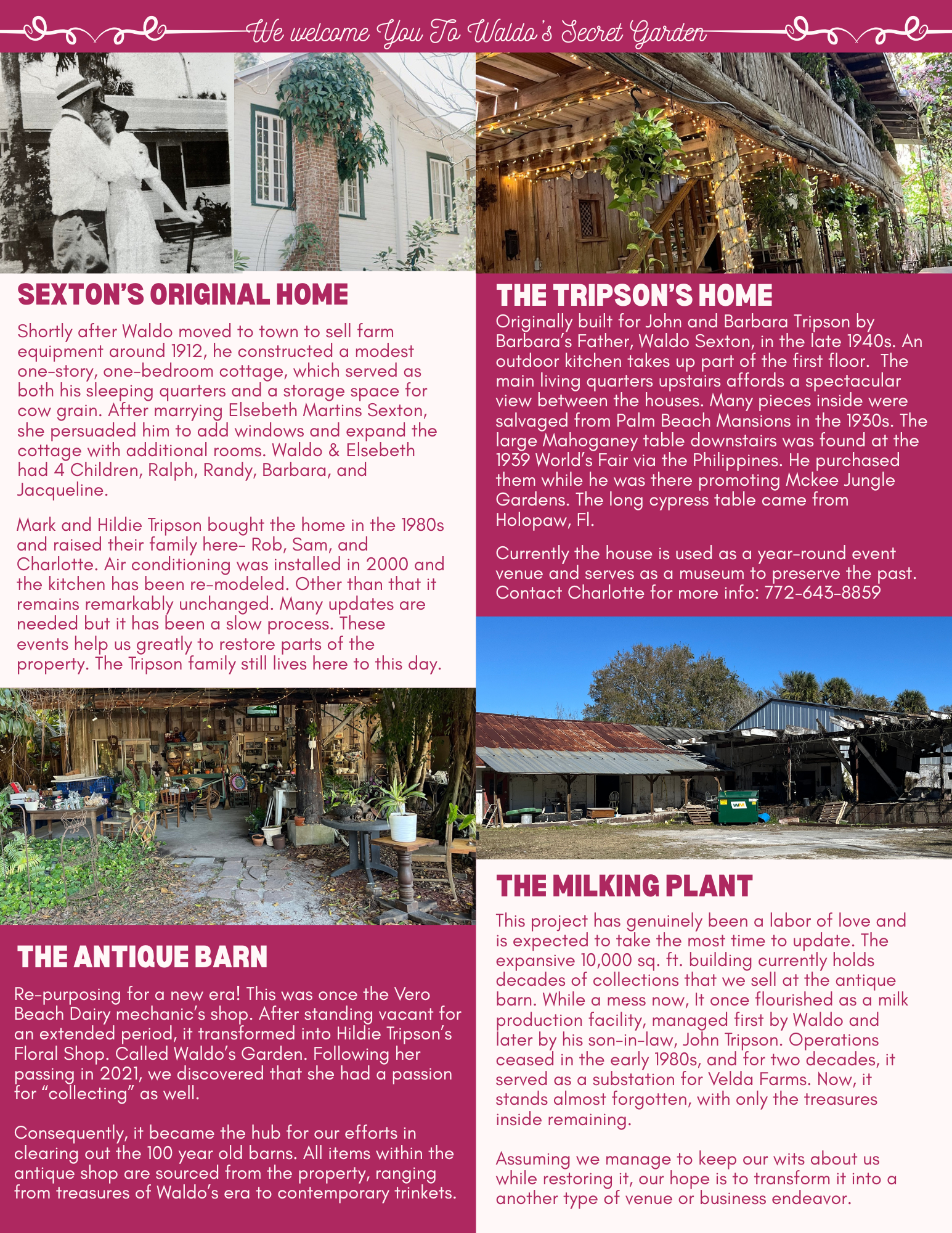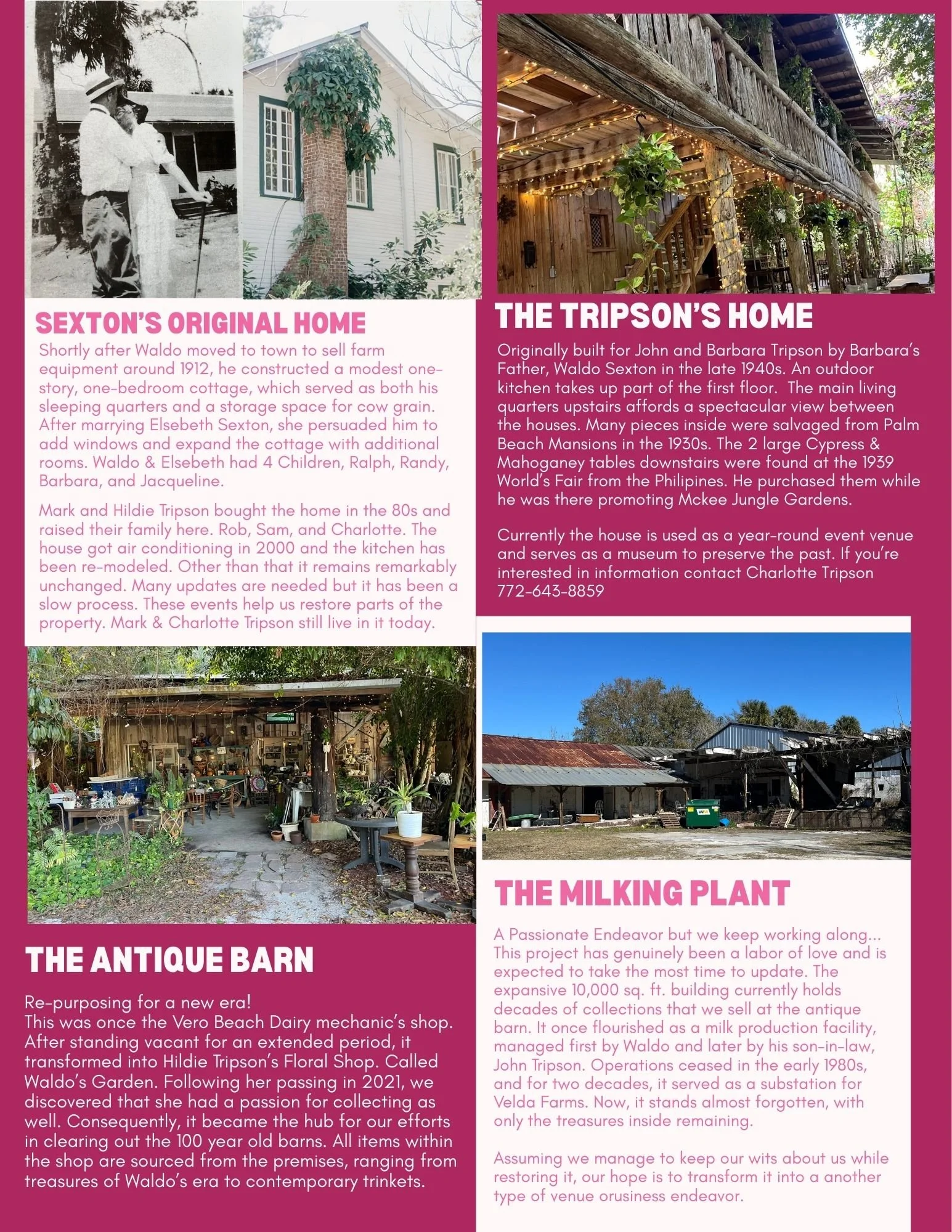 The family developed Vero Beach Dairy in 1922, which is the back parcel of the property (later changed to Tripson Dairy) – what used to be a